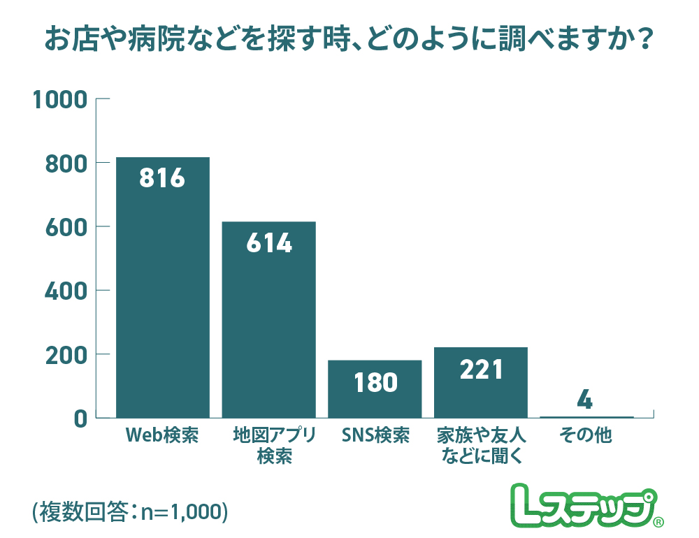 地図アプリに関するアンケート調査(2024年3月実施、全国男女1,000人対象)によると、63.9%の人が地図アプリに登録されている口コミや評価を「お店選びの参考にする」と回答しています。「全然しない」と回答した人はわずか4.4%にとどまり、口コミが消費者の来店判断に大きな影響を与えていることがわかります。