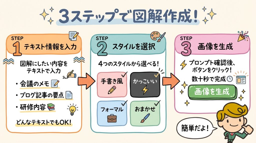 【AI図解作成】テキストを入力するだけ!グラレコ風の図解が誰でも簡単に作れる