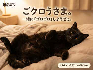 同じプロンプト、同じ猫の写真を使って「くつろぎ」をテーマにしたバナーを生成した結果がこちらです。