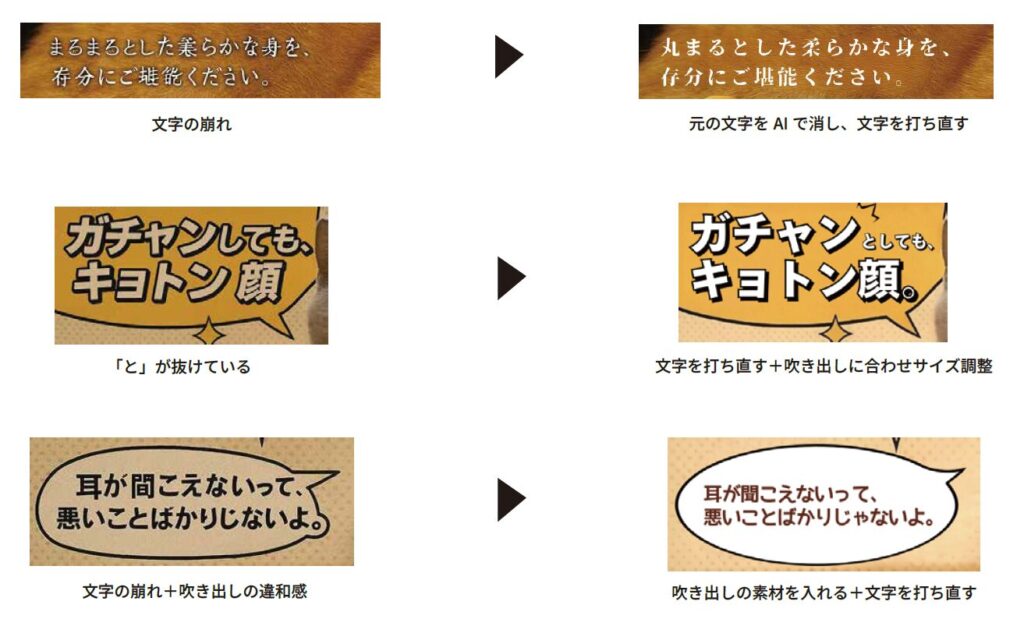 ChatGPTやNanoBanana(無料版)では、日本語テキストに以下のような問題が頻発しました。