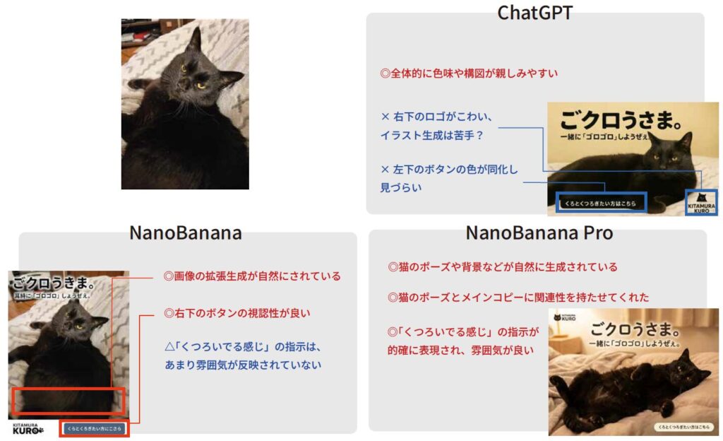 今回、サンロフトのデザインチーム「YARUra」の北村さんが、ChatGPT、NanoBanana、NanoBanana Proの3つのAI画像生成ツールを実務視点で徹底検証しました。