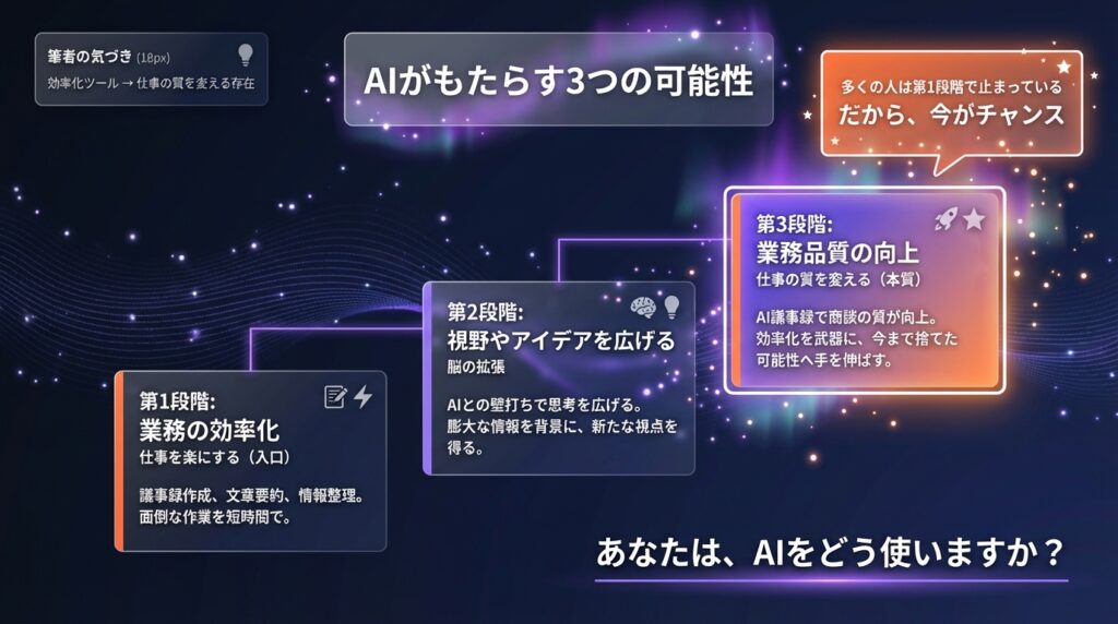 - 第3段階:業務品質の向上 → 仕事の質を変える(本質)